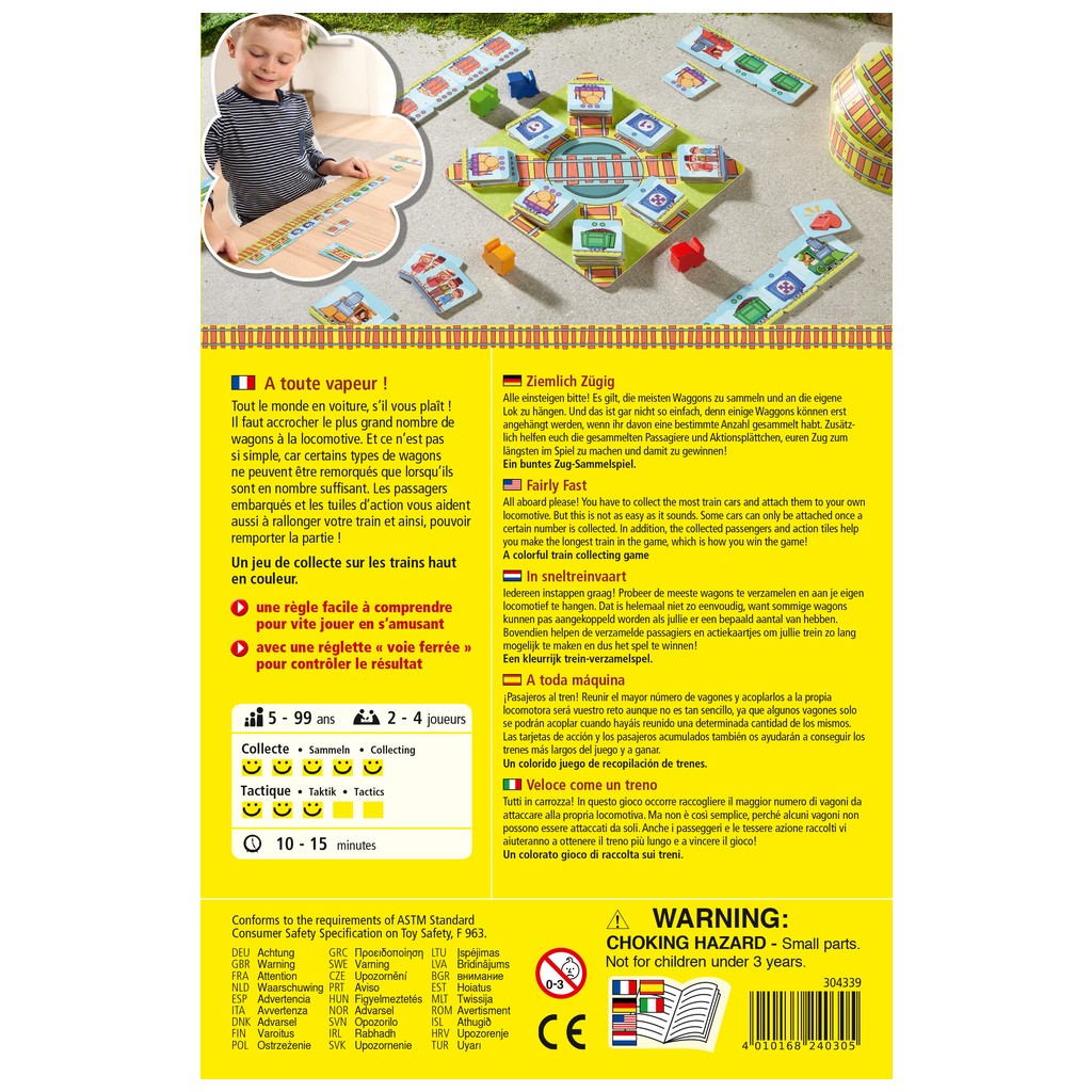 Tout le monde en voiture, s’il vous plaît ! Il faut accrocher le plus grand nombre de wagons à la locomotive. Et ce n’est pas si simple, car certains d’entre eux ne peuvent être remorqués que si les joueurs en ont un nombre suffisant. Les passagers embarqués et les tuiles d’action les aident aussi à rallonger leur train et ainsi, pouvoir remporter la partie !