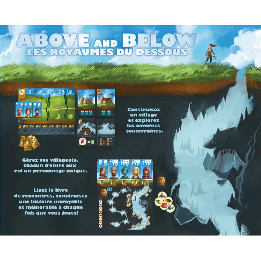 Above and Below est un mélange de jeu de construction de ville et de jeu narratif ou vous et jusqu’à trois autres joueurs êtes en compétition pour construire le meilleur village a la surface et en sous-sol.