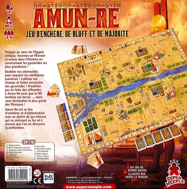 Amun-Re le jeu de cartes est un jeu de Reiner Knizia, dérivé du célèbre jeu de plateau Amun-Re, il apporte une nouvelle mécanique de gestion de main. Chaque joueur incarne un pharaon qui va acquérir des provinces aux enchères puis faire construire des pyramides dessus pour gagner des points de victoire.