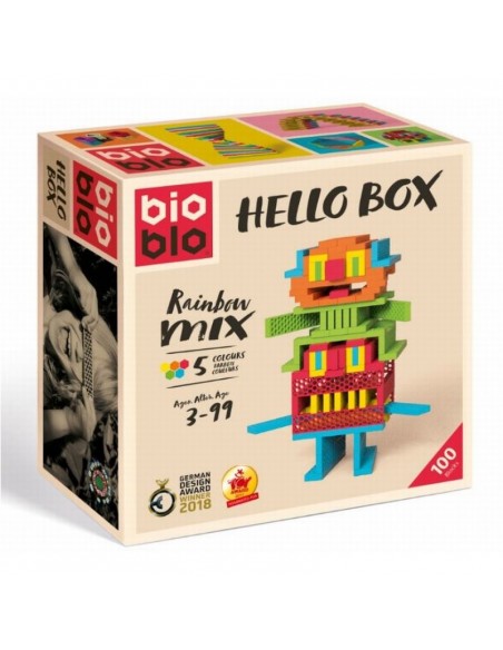 Découvrez la Hello Box 100 briques BioBlo, un nouveau jeu de construction écologique et coloré comprenant 5 couleurs teintées dans la masse, un jeu fabriqué en Europe pour les enfants dès 3 ans.