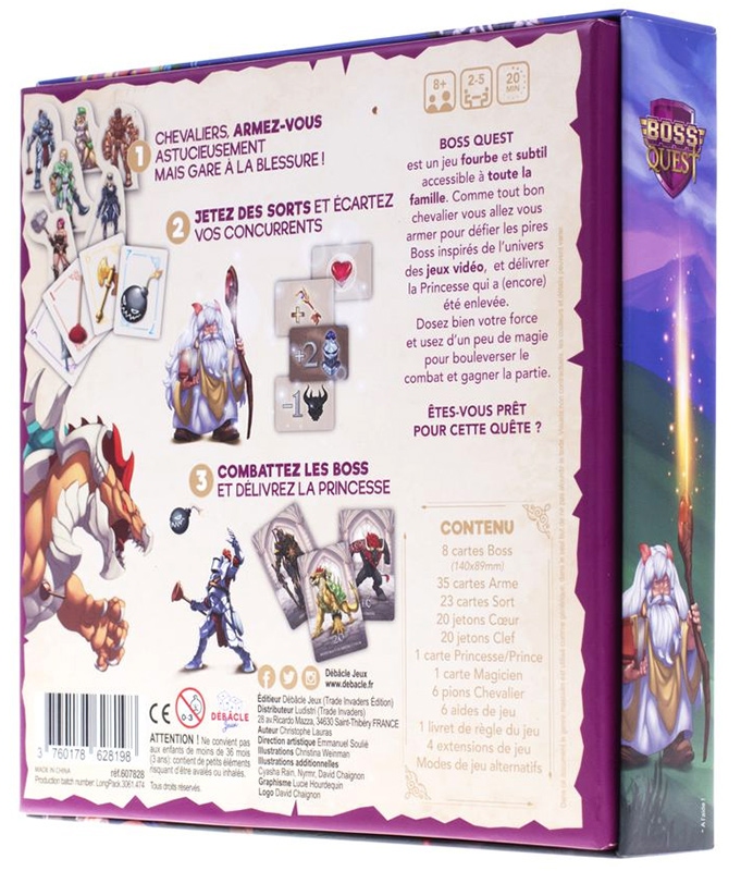 Boss Quest est un jeu fourbe et subtil accessible à toute la famille. Comme tout bon chevalier vous allez vous armer pour défier les pires Boss parodiant l’univers des jeux vidéo, et délivrer la Princesse qui a (encore) été enlevée.