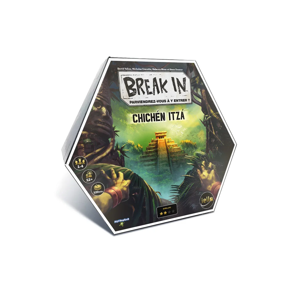 Break In : Chichen Itza vous transporte au fin fond de la jungle, à la découverte des trésors de l’ancien empire maya. Explorez les pyramides et les temples de ce peuple disparu et percez leurs secrets en résolvant diverses énigmes. Parviendrez-vous à découvrir ce que cache la légende de Kukulcán, le serpent à plumes, et du dieu Jaguar ? En sortirez-vous indemne ?