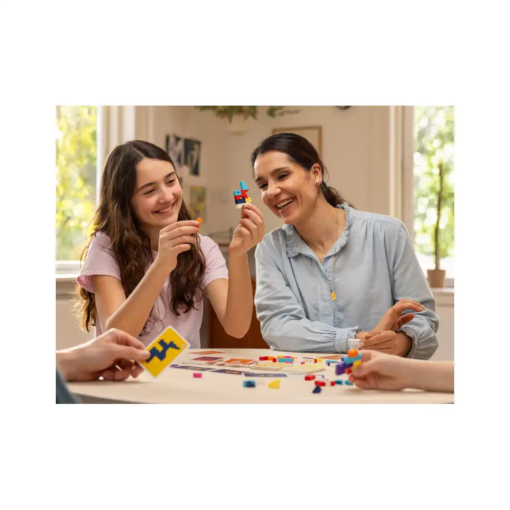 Chaque manche est une course contre la montre et les autres équipes. Des cartes Défis peuvent venir pimenter les parties, avec des contraintes comme :Construisez les yeux fermés.