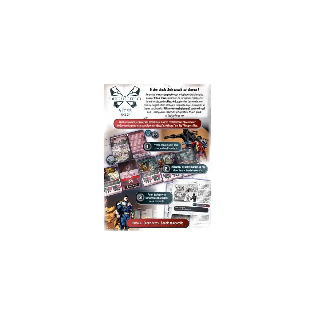 Dans Butterfly Effect, vivez une aventure coopérative aux multiples embranchements. Utilisez vos jetons Action pour réaliser des Actions et avancer dans l’aventure, progresser d’Ère en Ère jusqu’à atteindre l’une des 7 fins possibles. Coopérez, choisissez ensemble votre chemin et découvrez jusqu’où vos décisions vous mèneront. Et si un choix pouvait tout changer ?