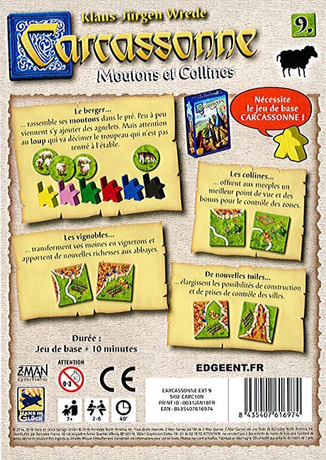 En plus des moutons et des collines, vous retrouverez aussi des vignobles dans cette extension. Ceux-ci apporteront des avantages à vos moines – qui avant ça disons-le ne faisaient que se prélasser dans leurs abbayes – en leur offrant 3 points pour chaque vignoble présent lors d’un décompte pour une abbaye complétée.