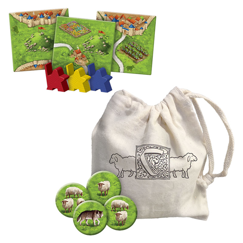 Lorsque vous retournerez une tuile de pré, vous pourrez placer votre berger sur le pré, plutôt que d’y placer un simple partisan. En se faisant, votre berger peut tenter d’acquérir un mouton dans le sac à moutons. Mais attention! Ce sac contient aussi des grands méchants loups! Si vous êtes chanceux et piochez un mouton, vous pourrez le placer à côté de votre berger – et ils vivront heureux pour l’éternité, ou presque! Vous pourrez, par la suite, lors de la pose d’une nouvelle tuile pré, tenter d’agrandir votre troupeau en piochant à nouveau dans le sac – à vos risques et périls – ou marquer des points pour le nombre de moutons présents dans votre pré.