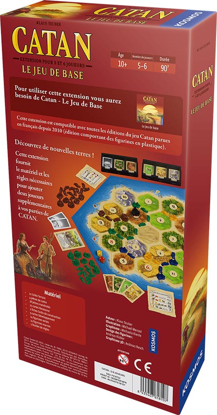 Cette extension contient le matériel pour jouer à Catan à 5 ou 6 joueurs.