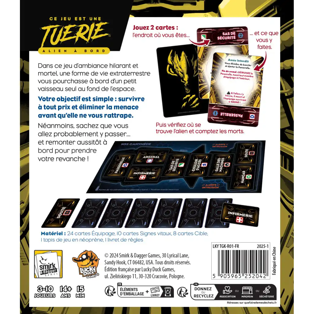 L’emplacement de l’extraterrestre est ensuite révélé. Si vous partagez cet emplacement et que vous avez le numéro de priorité le plus élevé, vous êtes mort. Si l’action d’un membre de l’équipage vous tue, vous êtes mort. En fait, la mort survient assez rapidement dans ce jeu – et dix minutes plus tard, vous vous remettez tous à jouer. Cependant, avec un peu d’habileté et de chance, vous pourrez peut-être isoler l’extraterrestre à l’un des endroits où vous pourrez le larguer dans l’espace, ainsi que tous les membres de l’équipage qui s’y trouvent.