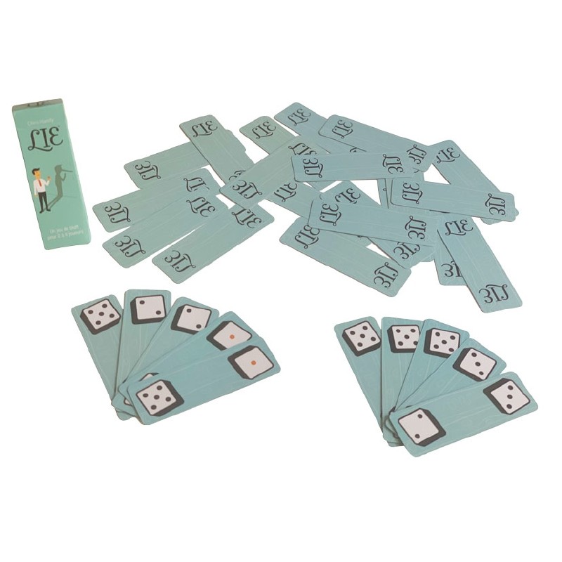 Dans Lie, vous devez estimer le nombre de dés présents dans les mains des joueurs. Mais attention à ne pas parier trop haut et être pris la main dans le sac : le menteur perdra une carte/dés. Arriverez-vous à être le dernier joueur avec des cartes/dés en main ?