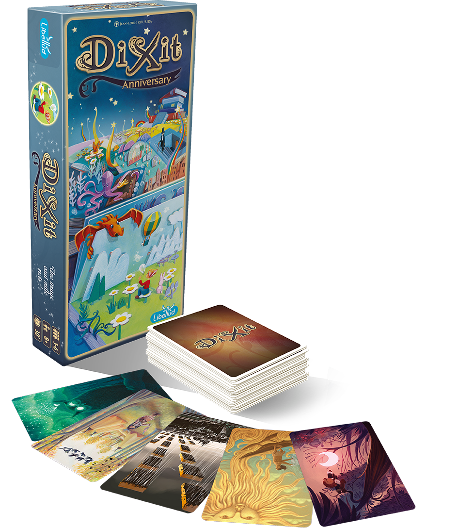 10ème anniversaire : contient un paquet de 84 nouvelles cartes qui vient compléter les cartes du jeu de base Dixit ou du jeu de base Dixit Odyssey.