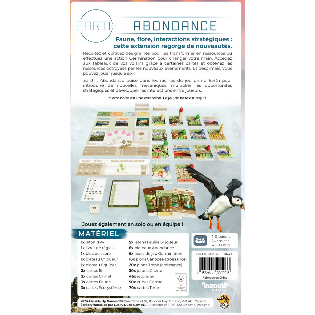 Earth – Abondance est une extension qui vous permet d’augmenter encore le riche gameplay du multiprimé Earth : Ajouter un 6ème joueur, une nouvelle ressource, de nouvelles sources d’interactions et l’opportunité de “nettoyer” votre main de cartes.