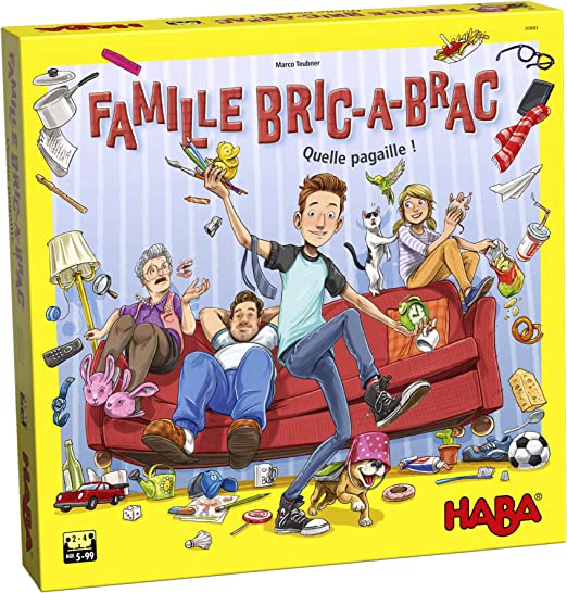 La maison de la famille Bric-à-brac est vraiment en désordre ! Et pendant que toute sa famille se prélasse sur le canapé, Hugo le fils tente de se frayer un chemin au milieu de ce chaos. Aidez-le à atteindre les objets éparpillés en gardant une bonne vue d’ensemble, en sollicitant votre mémoire et surtout en évitant de piétiner les objets des autres joueurs. Le gagnant est le premier à réunir quatre objets.