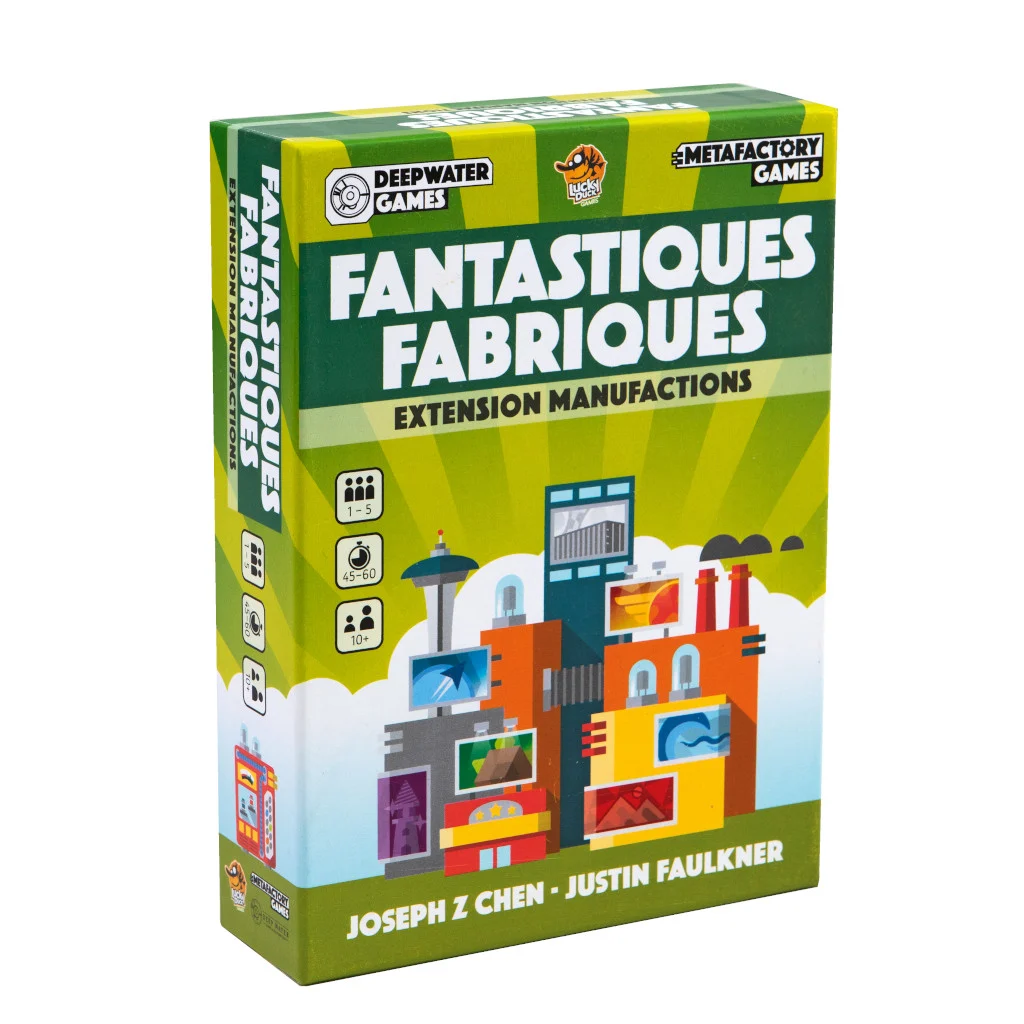 Manufactions est une extension pour Fantastiques Fabriques y ajoutant de nouveaux plans et de nouveaux prestataires, ainsi qu’une nouvelle ressource (les vitamines) et des factions, donnant des pouvoirs uniques et asymétriques aux joueurs.