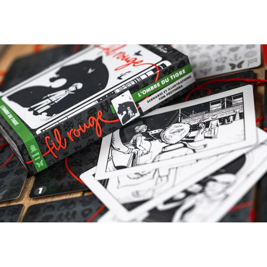 Fil rouge est une gamme de jeux coopératifs et narratifs de Julien et Tom Prothière dont le premier opus, en 4 chapitres, L’Ombre du Tigre, est illustré par Tom Prothière.