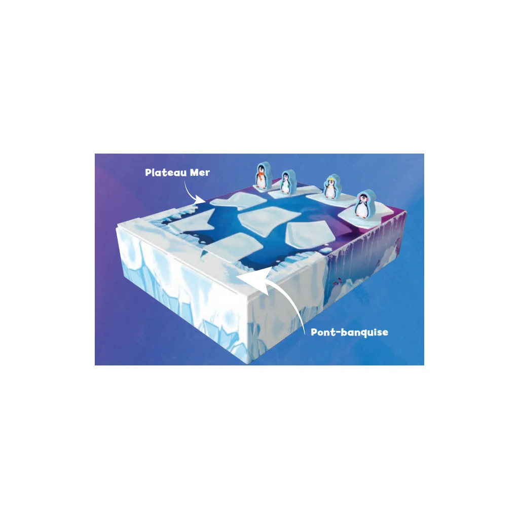 C’est le temps idéal pour jouer sur les icebergs, le vent pousse les morceaux de glace, c’est très rigolo ! Nous nous amusons beaucoup avec nos amis pingouins ! Oh non, le soleil se couche déjà et il faut vite rentrer à la maison ! Vite-vite-vite ! Sautons d’iceberg en iceberg pour rejoindre tous ensemble la banquise avant que la nuit ne soit complètement tombée !