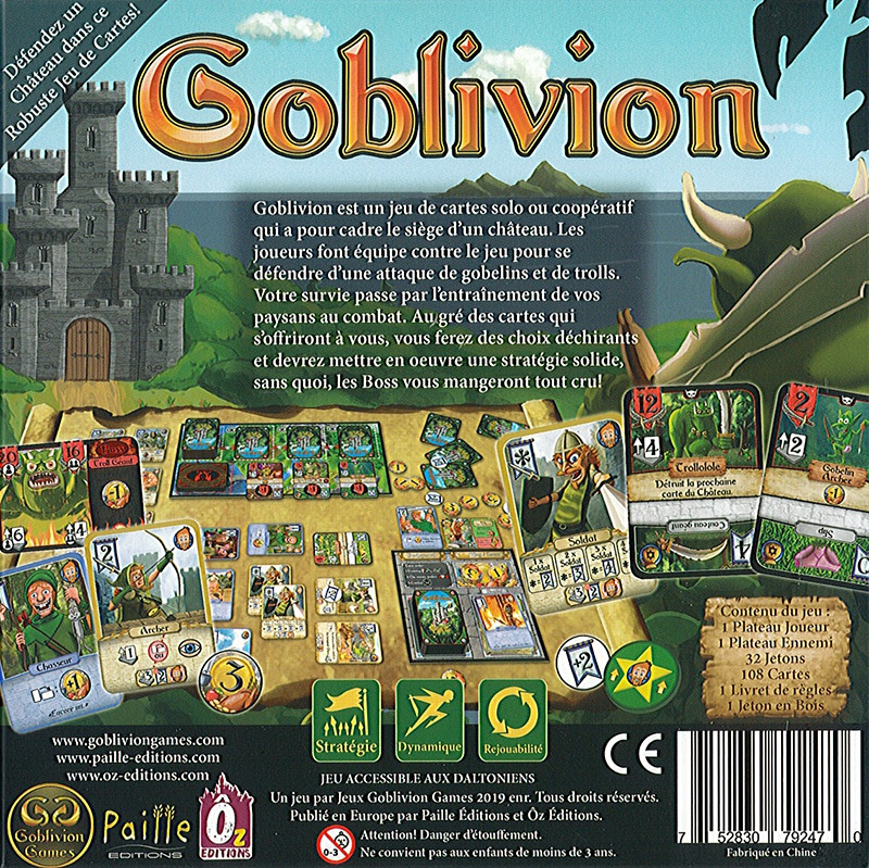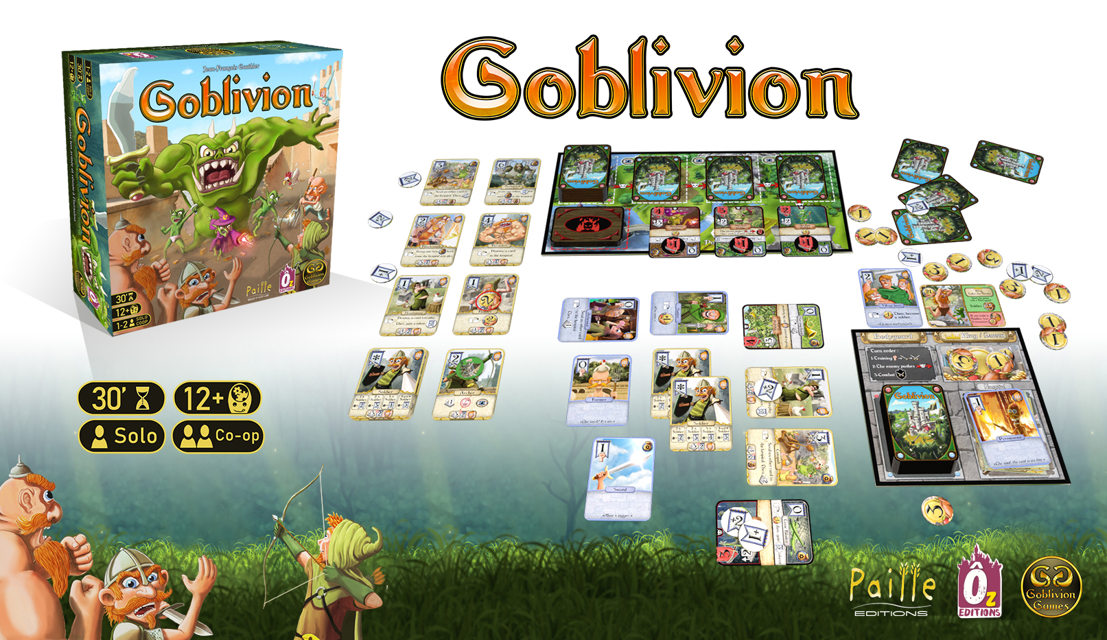 Goblivion est un jeu de stratégie mêlant le castle defense et le deckbuilding. L’univers se situe dans un médiéval-fantastique débordant d’humour. Ce jeu de carte solo compte aussi un mode coopératif à 2 ! En tant que Roi ou Reine du royaume de Goblivion, chaque joueur devra entraîner ses paysans pour les faire évoluer en guerriers forts et robustes dans le but de protéger le peuple de l’invasion des Gobelins.