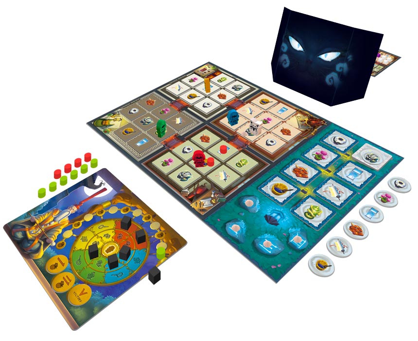 le Goryō planifie ses déplacements pour briser un nouvel objet et tromper son adversaire, en plaçant des cubes de déplacement sur un plateau effaçable représentant le Palais, caché derrière un paravent.