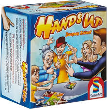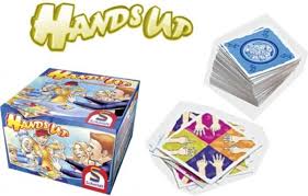 Hands Up est un jeu d’habileté, de rapidité et d’observation qui bouge beaucoup. Il est composé d’un paquet de 55 cartes représentant une ou deux mains dans des positions différentes sur 4 images permettant à tous les participants de voir le dessin sous un bon angle, quelle que soit leur position autour de la table.