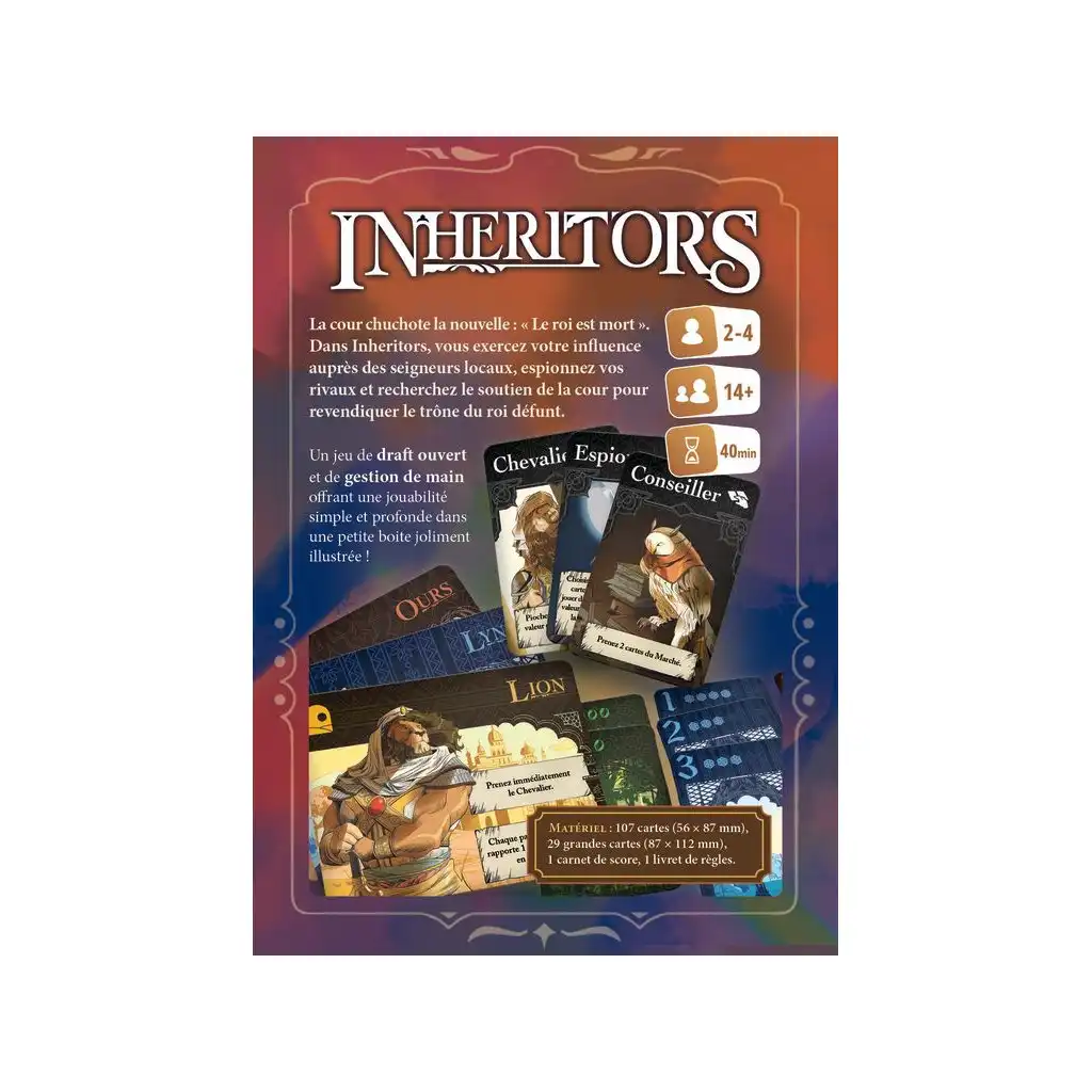 Avec son système de sélection de jeu de draft ouvert et les pouvoirs asymétriques de ses clans, Inheritors propose un jeu de gestion de main de cartes à la fois stratégique et riche en rejouabilité. Si vous aimez les jeux avec une montée en puissance progressive vous allez être servi. La tension de fin de partie devrait entraîner chez vous quelques sueurs froides.