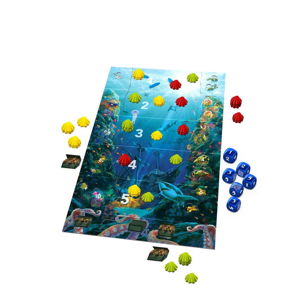 Dans INTO THE BLUE, vous incarnez une équipe de plongeurs à la recherche de mystérieux trésors enfouis sous les eaux. Mais attention, vous n’êtes pas le seul à vouloir vous emparer de ces merveilles immergées… Explorez les profondeurs et tentez de remonter les biens les plus précieux. Marquez votre présence dans les différentes zones pour espérer en prendre le contrôle et vous attribuer leurs richesses !