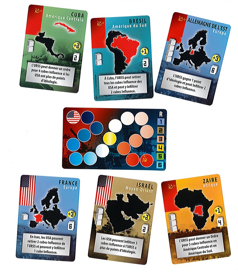 Une carte par tour, 9 tours, simple en apparence, mais chaque tour fera donc l’objet d’un choix crucial et déterminant… très à l’image de la situation de l’époque ! Chaque carte vous posera un dilemme, en dehors de la nécessité de lire intelligemment le jeu de votre adversaire.