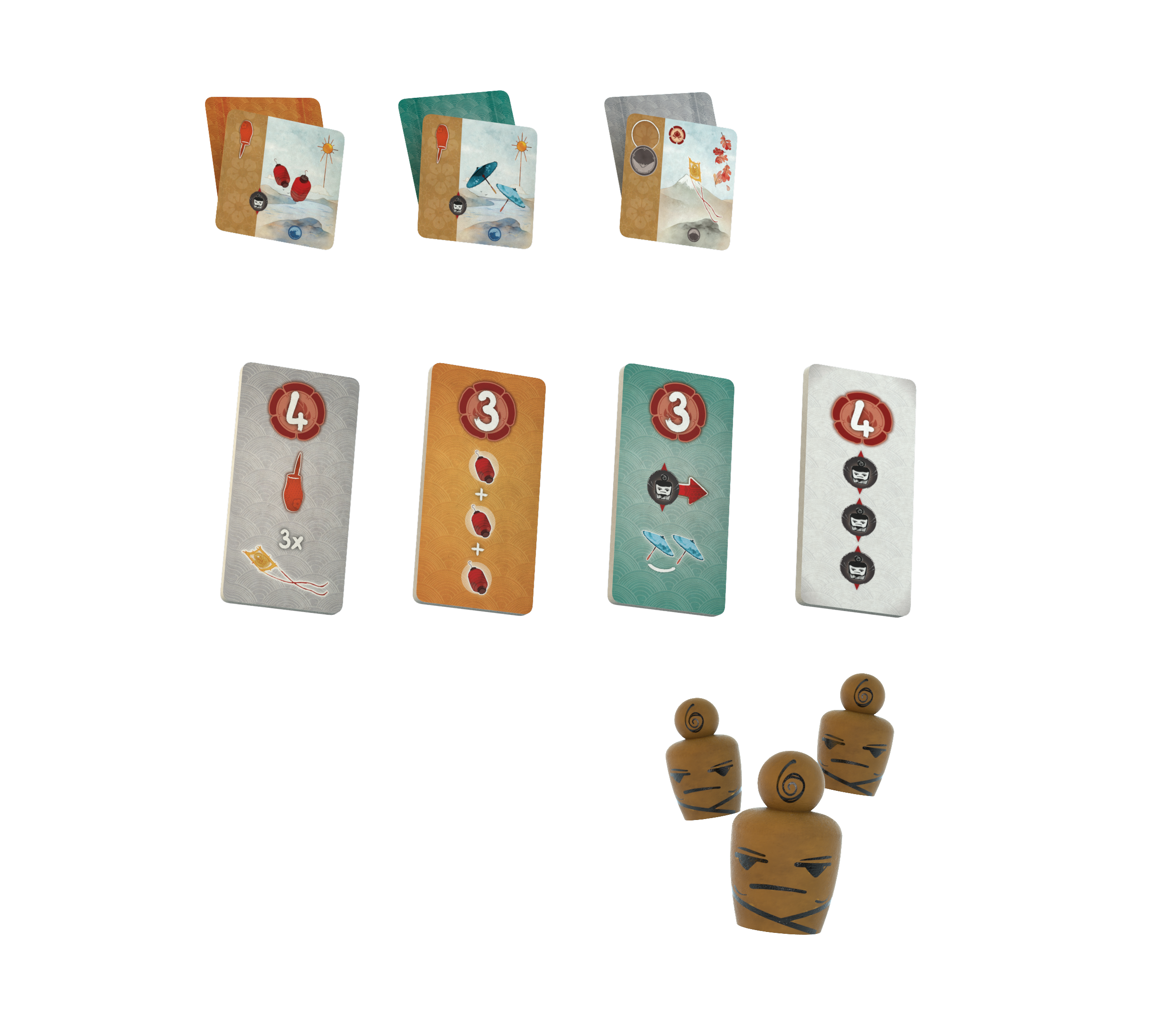 En début de partie, Kanagawa Yokai vous laisse désormais le choix des sujets de vos estampes. Ombrelles, cerfs-volants et lanternes constituent trois nouveaux sujets d’étude que votre maître pourra vous enseigner. Lors de la mise en place de la partie, vous choisirez désormais de jouer avec deux familles de cartes du jeu de base et deux familles issues de l’extension. Les parties deviennent donc plus variées, plus stratégiques. Il vous faut en effet désormais adapter vos choix aux nouveaux diplômes pour espérer l’emporter. Quant aux estampes, elles sont plus magnifiques que jamais sublimées par les 54 nouvelles cartes du jeu.