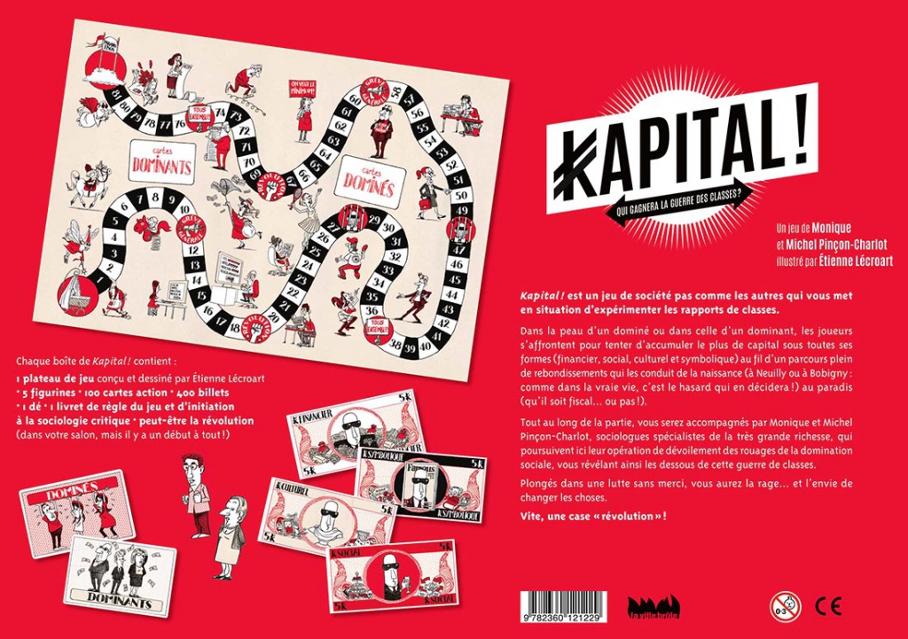 Kapital ! est bien plus qu’un jeu de société, c’est tout simplement le premier jeu de sociologie critique. Il permet de comprendre d’appréhender et même d’expérimenter les mécanismes sociologiques de la domination, avec un jeu de plateau aussi drôle que palpitant, mis en image par le dessinateur Etienne Lécroart.