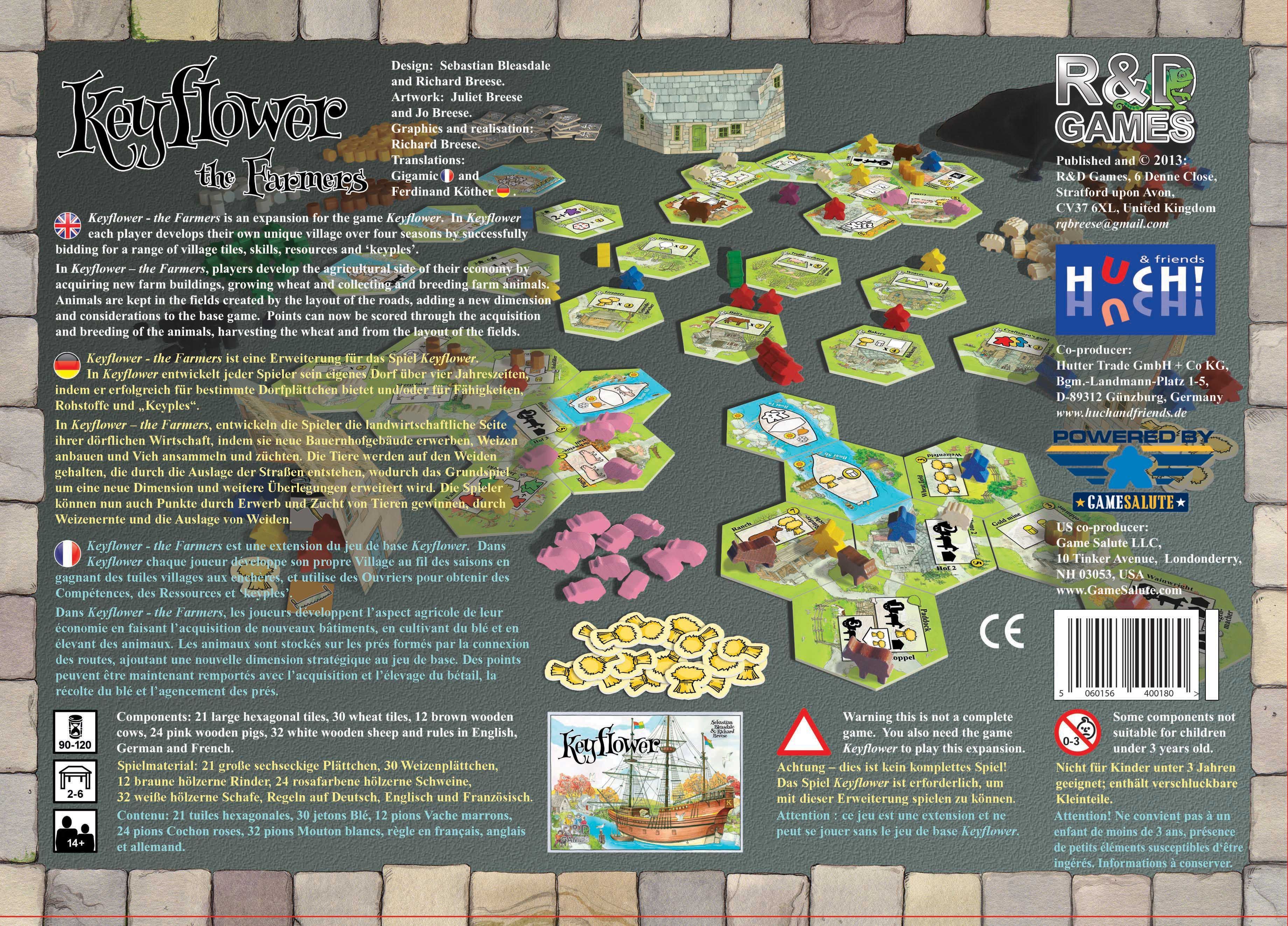Dans Keyflower : the farmers, les joueurs développent l’aspect agricole de leur économie en faisant l’acquisition de nouveaux bâtiments, en cultivant du blé et en élevant des animaux (vache, cochon et mouton). Les animaux sont stockés sur les prés formés par la connexion des routes, ajoutant une nouvelle dimension stratégique au jeu de base. Des points peuvent être maintenant remportés avec l’acquisition et l’élevage du bétail, la récolte du blé et l’agencement des prés.