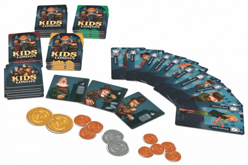 Dans les rues de Londres, il ne fait pas toujours bon se promener pour les bourgeois car les enfants des rues ont les doigts agiles. À vous donc d’avoir la bande la plus habile tout en veillant à ne pas être trop gourmand car le chef du quartier est âpre au gain et dépouillera impitoyablement celui d’entre vous qui ramènera le plus gros butin. Dans le jeu Kids of London, vous disposez chacun de neuf gamins, numérotés de 0 à 8. Lorsqu’un pigeon passe le coin de la ruelle, les poches lourdes de bonnes pièces, choisissez quel vaurien ira le dépouiller. Le plus haut l’emporte, ainsi que le plus bas (qui va fouiller d’autres vestes et remporte sa valeur en monnaie). Les autres repartent bredouilles et les égalités sont résolues par un partage équitable. Si plusieurs « 8 » sont joués – aïe ! – la police débarque et les bobbies arrêtent vos chefs de bande. À la fin de la partie, les véritables maîtres de la bande dépouillent le joueur qui a volé le plus – et le second voleur remporte la partie !