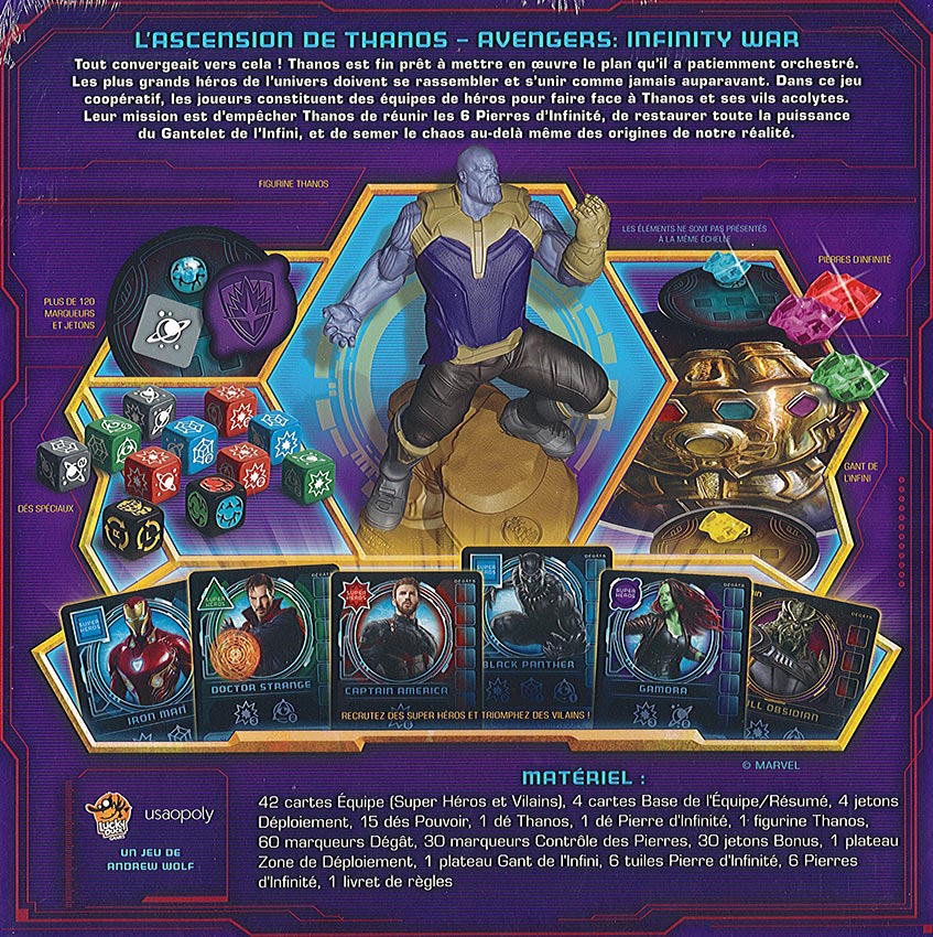 L’Ascension de Thanos est un jeu basé sur le hasard : hasard des dés, hasard des cartes déployées… ce qui est au fond le choix le plus judicieux pour rendre tout à fait rejouable ce jeu familial. Mais le résumer à cet aspect serait négliger ce qui fait sa force, la montée en puissance des Avengers au fur et à mesure de la partie. Chaque héros recruté permet de lancer et relancer des dés, soigner des héros, piocher des jetons bonus, illustrant parfaitement l’adage selon lequel l’union fait la force – qui n’a naturellement jamais été aussi vrai qu’à ce moment de la saga des Avengers.