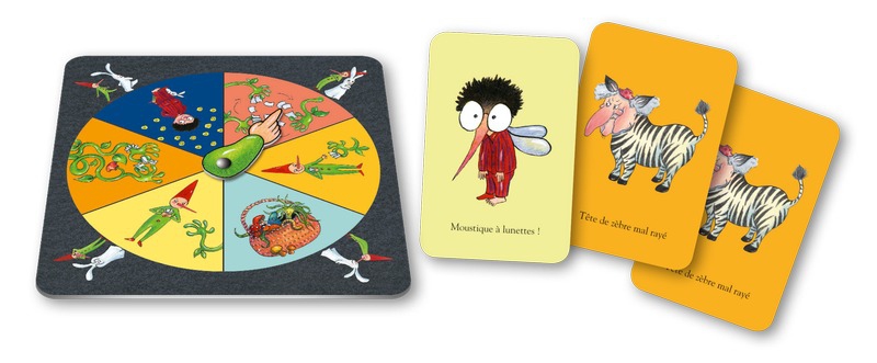 Le premier joueur tourne alors la roue et réalise la consigne indiquée par la flèche. : – pioche une carte chez le joueur de ton choix ; – un joueur pioche dans ton jeu; – tout le monde change de jeu ; – échange de jeu entre deux joueurs ; – jour de marché ; – joker. La partie se termine quand toutes les paires ont été posées sur la table. Le joueur qui a la carte Mistigrouille en main a perdu.