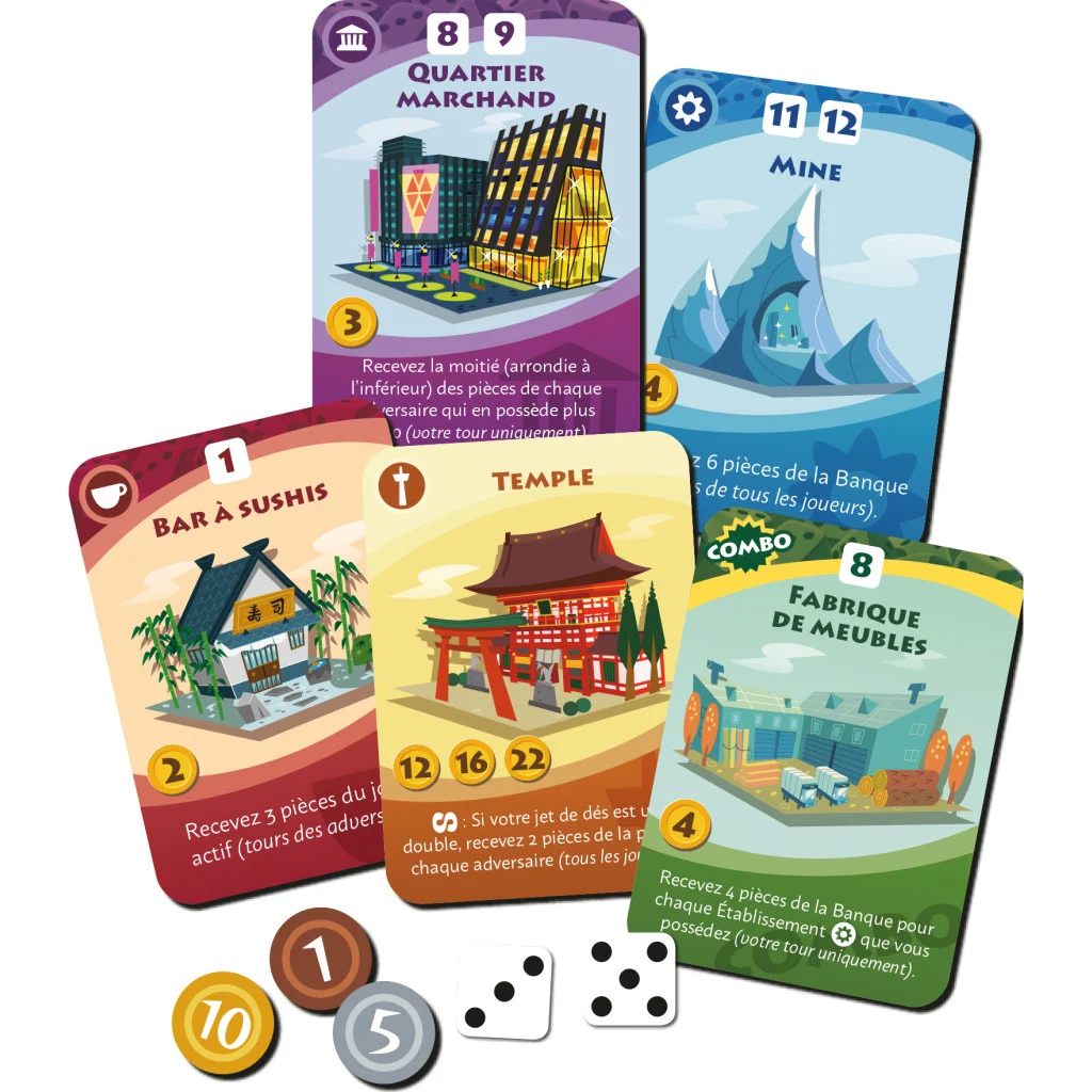 Les cartes de ce jeu ont des effets excitants et jamais vus auparavant. Mais choisissez judicieusement ce que vous construisez, car vos repères peuvent aussi profiter à vos adversaires ! Avec plus de variété que jamais, aucune partie ne sera identique à une autre. Machi Koro 2 va inciter les fans à revenir encore et encore !