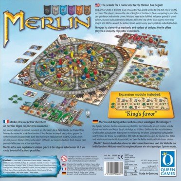 Dans le jeu Merlin, chaque joueur incarne l’un d’entre eux et s’efforce de gagner la faveur d’Arthur pour devenir le nouveau roi. Les dés permettent à chaque joueur de déplacer Merlin ou son propre chevalier sur la piste d’action circulaire. La case où ils terminent leur déplacement indique l’action possible. Chaque joueur contrôle le déplacement de son propre chevalier, tandis que Merlin est déplacé par tous les joueurs.