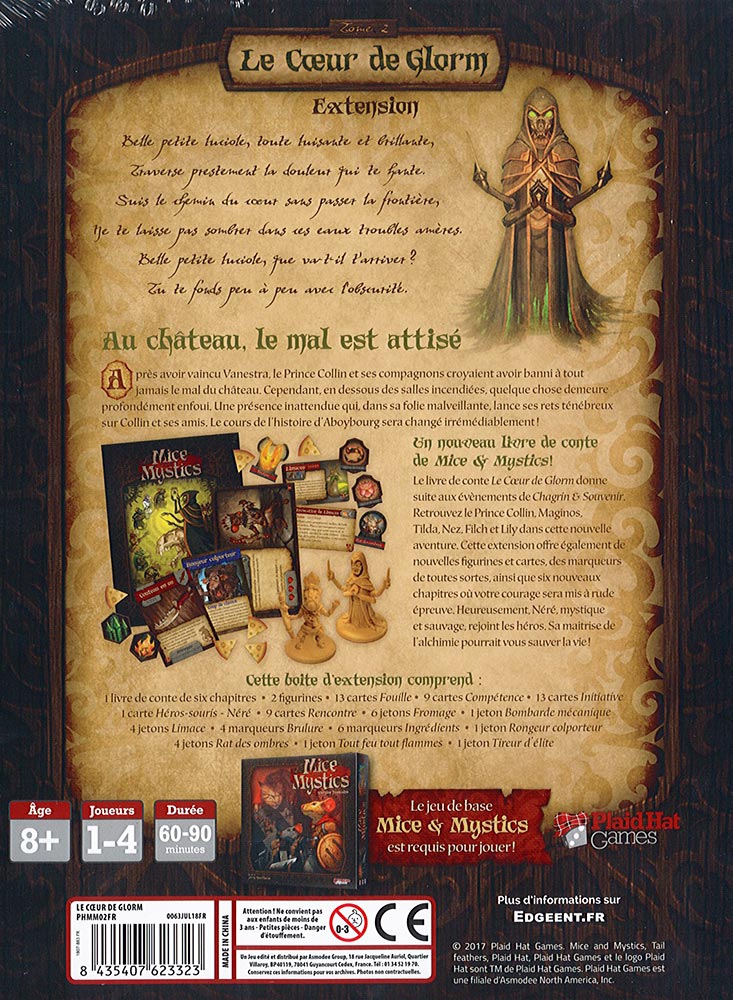 Le livre de conte Le Coeur de Glorm donne suite aux évènements de Chagrin & Souvenir. Cette extension contient six chapitres, deux nouvelles figurines, 13 nouvelles cartes fouilles, 9 nouvelles cartes compétences, et un nouvel allié nommé Néré… Mystique et sauvage, Néré rejoint les héros et sa maîtrise de l’alchimie pourrait vous sauver la vie.