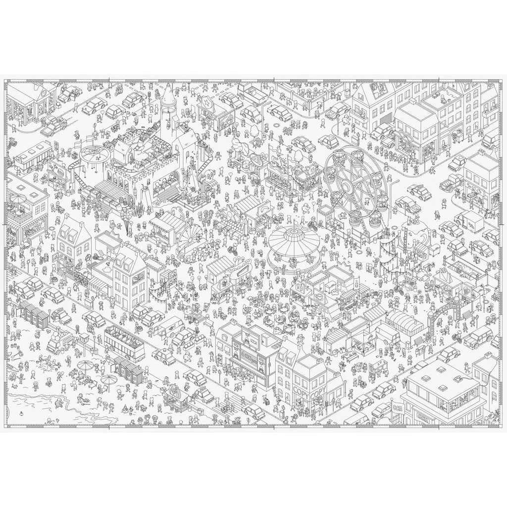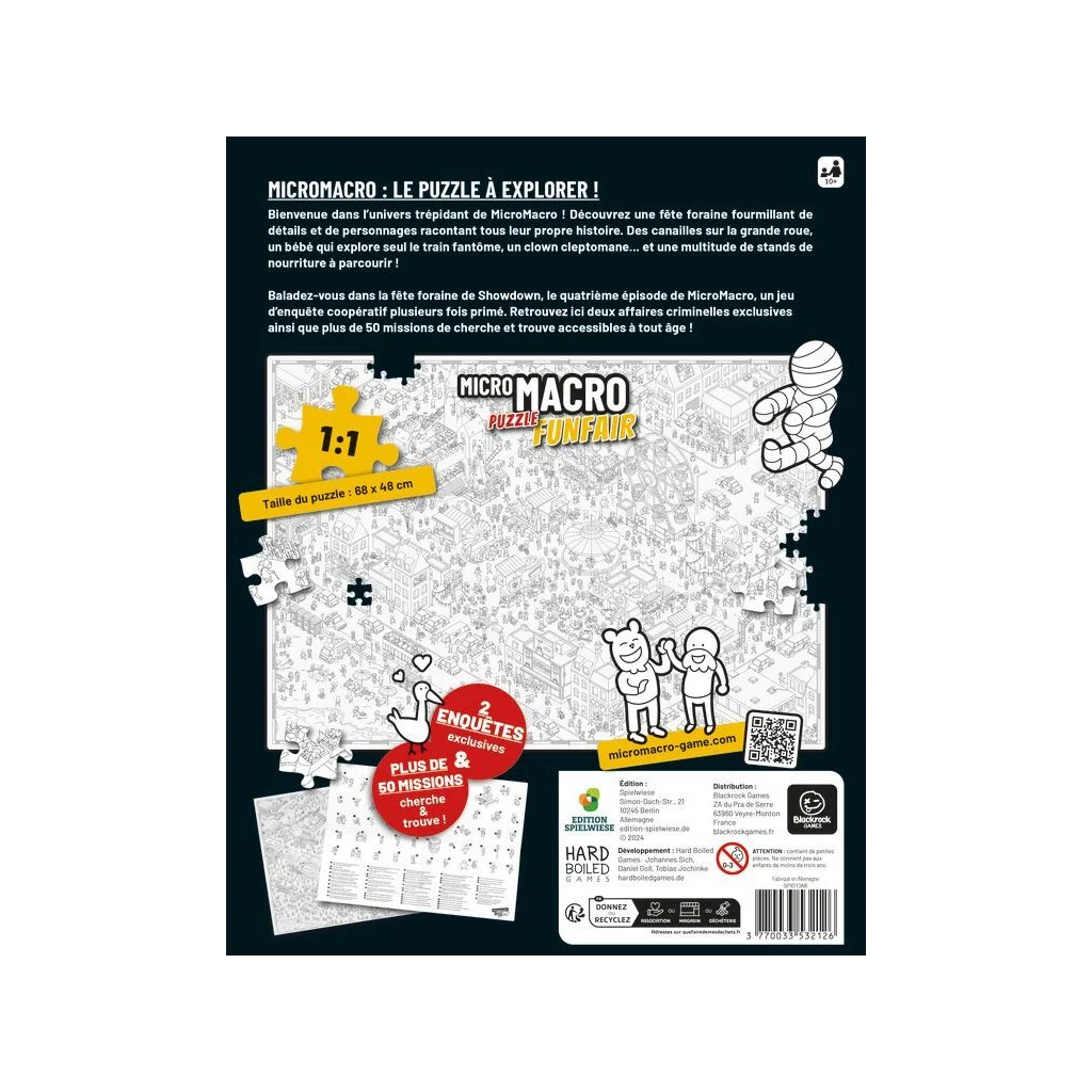 Dans Micro Macro : Puzzle Funfair – 500 Pièces, vous découvrirez le plan détaillée du quartier de MicroMacro Showdown, offrant une vue d’ensemble des ruelles et de la zone de la Fête foraine.