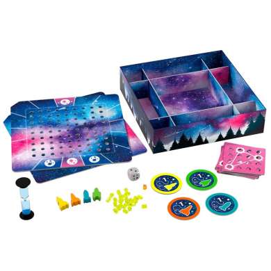 À la recherche des constellations ! Le système de navigation du vaisseau spatial est tombé en panne au beau milieu de la mission spatiale. Qui parviendra néanmoins à rentrer chez lui ? Des constellations étincelantes guident les joueurs dans leur nouvelle mission : bien observer les étoiles ! Une vue perçante et un peu de chance au dé permettront à l’astronaute le plus rusé de gagner cette course originale