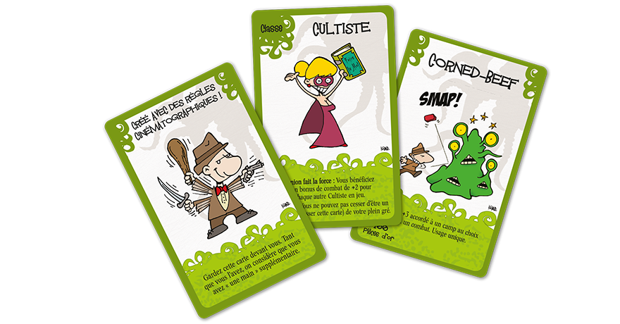 Dans Munchkin Cthulhu, vous pouvez devenir Tabasseur de monstres, Investigateur, Professeur ou Cultiste. Mais une fois que cous faites partie du Culte, plus moyen d’en sortir ! Vous étudierez le Nécrononichons et les Pages jaunes d’Innsmouth pour vaincre des monstres de réalités parallèles, tous de grands classiques comme le Kermitoggoth, l’Horreur inçonon… impon… imprononçable, les Beaufonds et l’effroyablement meuuuuugnon p’tit Chibithulhu. Et ils ont plein de trucs qu’on peut leur arracher des tentacules, une fois refroidis comme il se doit. Même si ça vous rend fou. La folie ? Aucune importance ! Ce qui compte, c’est de GAGNER !