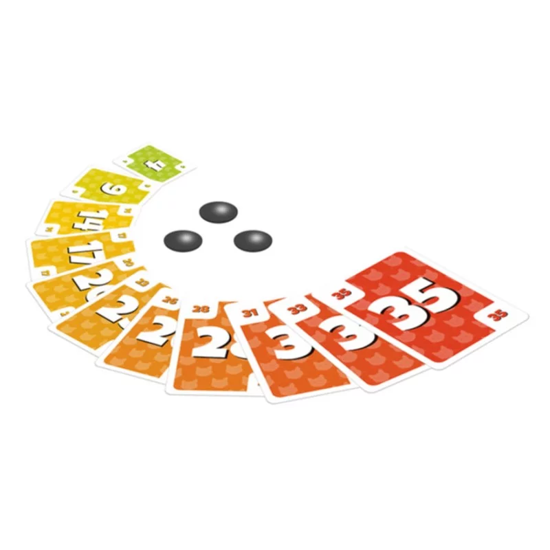 À votre tour de jeu, faites le choix d’accepter une carte ou de dire « Non merci ! » en posant l’un de vos jetons sur la carte refusée. C’est ensuite au joueur suivant de prendre une décision et éventuellement de récupérer votre jeton. Chaque carte acceptée fait perdre des points. Mais si vous reconstituez les suites, vous ne perdez que la valeur de la plus petite carte de la suite. Gérez au mieux vos jetons, car, de toute façon, il vous faudra accepter des cartes.