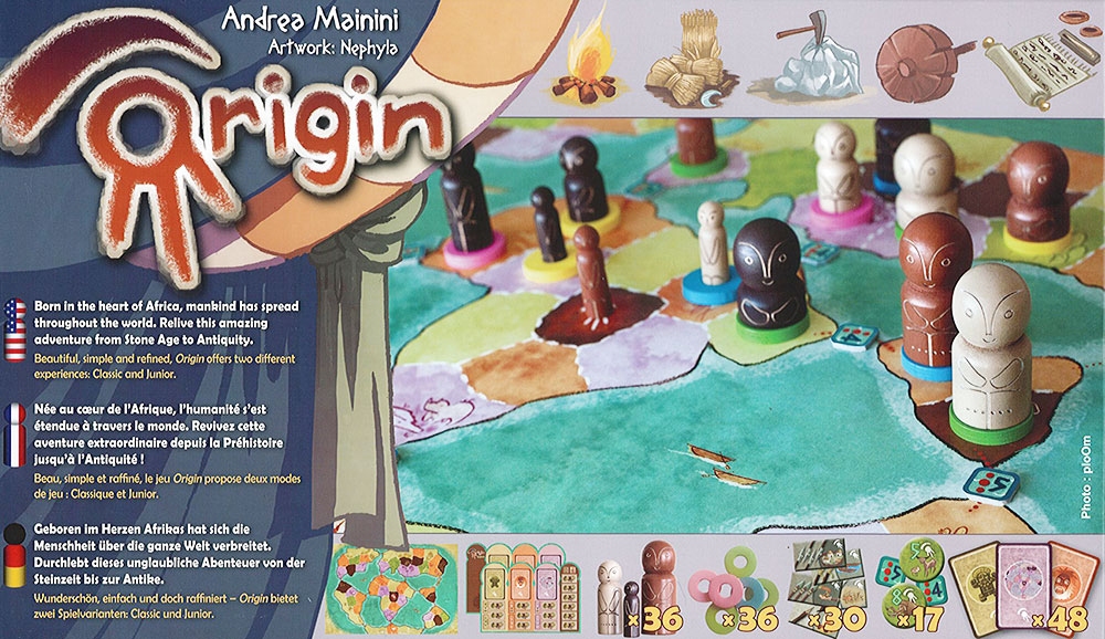 Origin est un jeu qui s’adresse à tous les publics. Avec ses deux niveaux de règles – débutant et joueurs initiés – vous pourrez jouer entre amis ou en famille pour des parties aux durées raisonnables, d’environ 45 minutes.