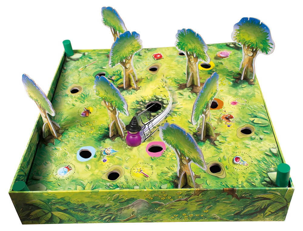 A votre tour, faites équipe avec votre voisin pour faire rouler la sorcière jusqu’à son objectif. Appuyez habilement sur les coins du plateau et ziiip, elle se déplace comme par magie. Essayez de bien vous coordonner pour aller rapidement jusqu’au bon endroit sans tomber dans un trou ni perdre son précieux chapeau. Qui parviendra à récupérer le plus d’objets ?