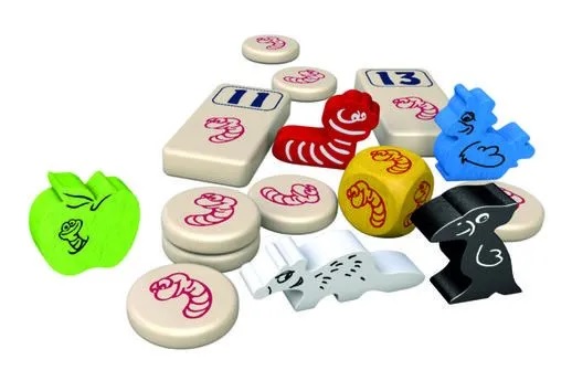 Pickomino, le jeu de base et son extension. Lancez les 8 dés spéciaux pour récupérer les meilleurs pickominos ou les voler à vos adversaires. Mais attention, avec l’extension de nouveaux pickominos et des personnages s’en mêlent : la mère poule protège vos pickominos, la belette permet de relancer les dés… Sans compter, le ver en boîte, le corbeau ou même le dé en or ! Qui collectera le plus de vers ?