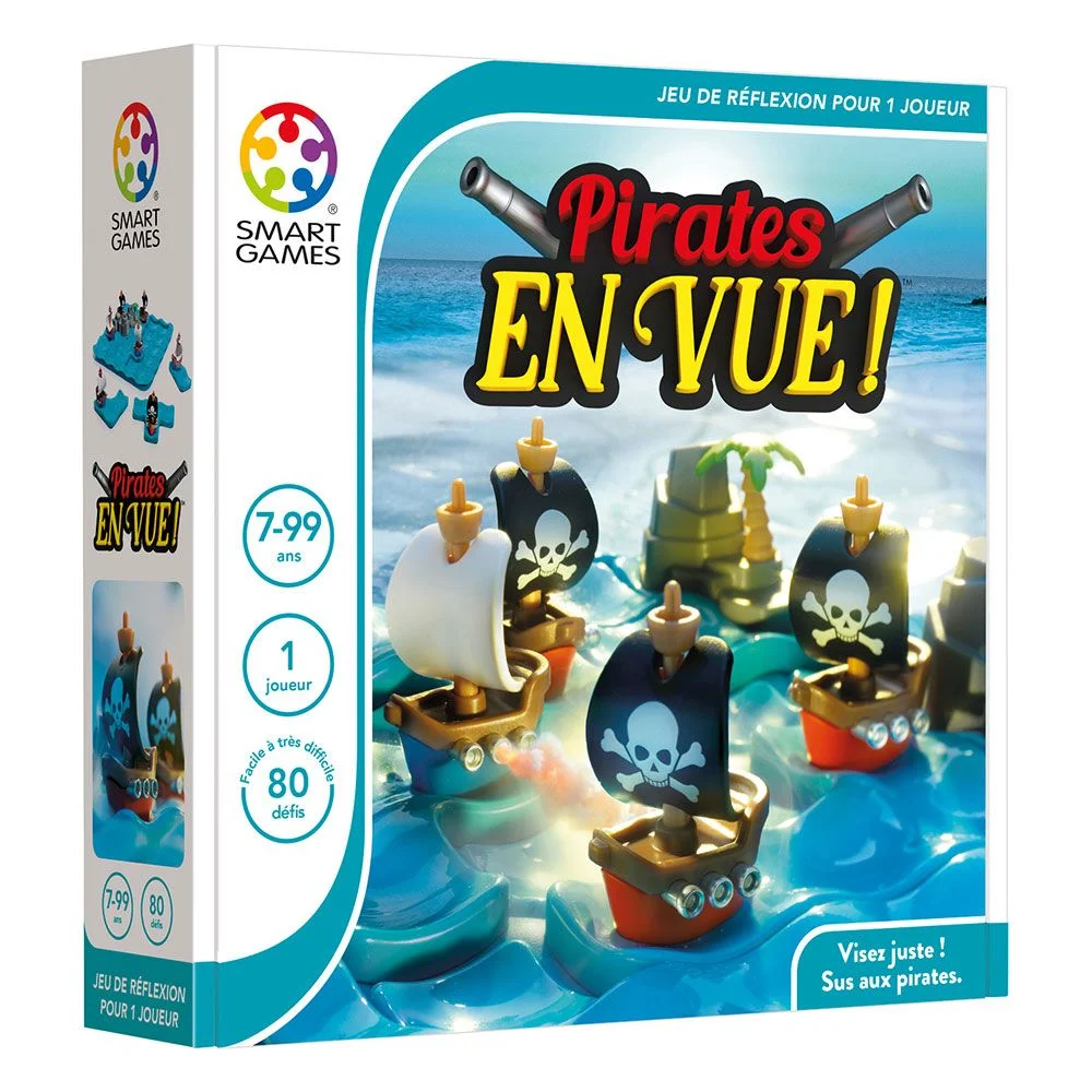 «Pirates en vue !» vous propose de revivre les grandes heures de la marine à voile et de la piraterie. Deux camps s’opposent pour le contrôle du commerce : les pirates et la marine royale. Vous devrez ainsi placer aux bons endroits vos vaisseaux afin de faire feu par tribord et bâbord sur les navires ennemis en dégageant une ligne de vue claire ou, au contraire, maintenir la paix de telle sorte qu’aucun navire ne puisse se tirer dessus… Découvrez QUATRE modes de jeu au travers des quatre-vingts défis du livret, vingt par mode, du plus simple au plus difficile.