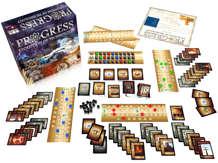 Progrès : Evolution de la Technologie est un jeu de cartes et de civilisation vous proposant de revivre le développement des technologies à travers l’histoire de l’humanité.