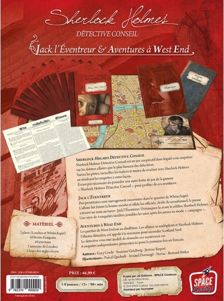 Sherlock Holmes – Détective Conseil est un jeu coopératif pour 1 à 8 joueurs dans lequel vous enquêtez sur les mêmes affaires que le célèbre détective de Londres. Suivez les pistes, recueillez les indices et tentez de rivaliser avec Sherlock Holmes en résolvant les enquêtes à votre façon.
