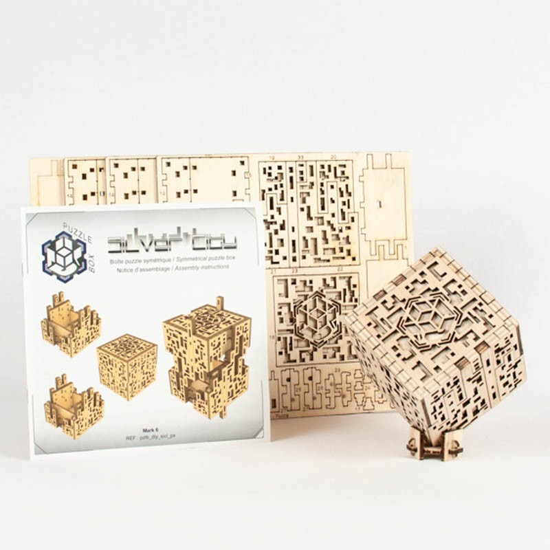 Construisez votre Silver City grâce à cette version en kit et amusez-vous à déjouer les pièges de ce cube énigmatique en contreplaqué de peuplier !