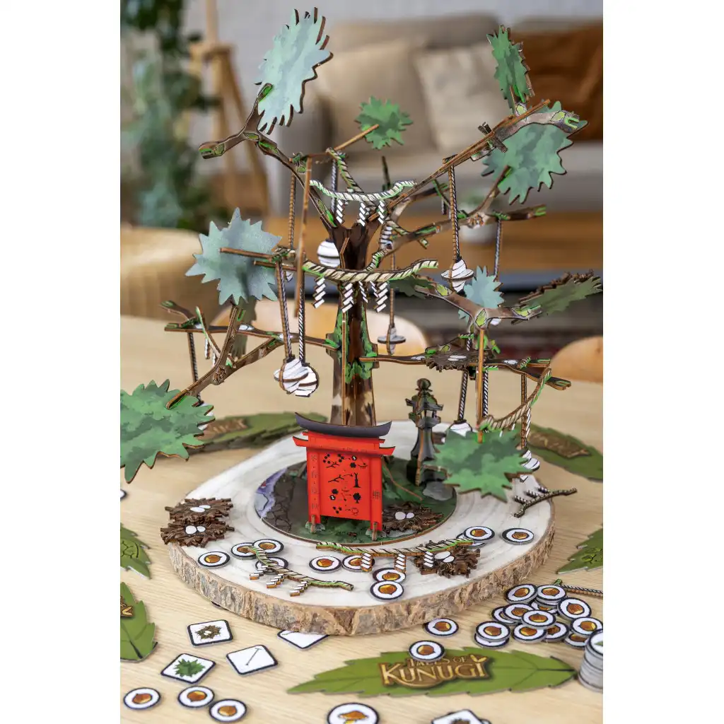 Tales of Kunugi est un jeu collaboratif où la dextérité, l’observation et la stratégie d’équipe sont nécessaires pour faire grandir votre Kunugi et faire gagner des points à votre équipe. Les joueurs, réunis en équipe de Kodama, feront grandir et décoreront le Kunugi, du tronc aux branches. L’ajout de rameaux à l’arbre permettra d’obtenir davantage d’options de décorations et d’accomplir des objectifs individuels et d’équipe. À la fin de la 5e année, chaque objectif accomplie apportera des points de victoire pour l’équipe, ce qui déterminera la splendeur du Kunugi. Plus les points de victoire seront élevés, et plus majestueux sera votre Kunugi.