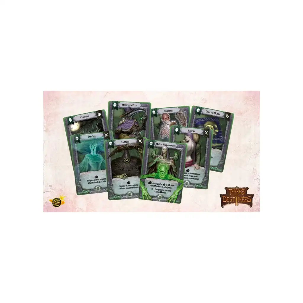 Plongez dans l’univers envoûtant de Terres de Destinées, un jeu de cartes mêlant enchères, stratégie et collection. Dans ce royaume où la magie et les complots s’entrelacent, chaque joueur doit tracer son propre chemin et accomplir sa destinée. À vous d’anticiper, de combiner vos cartes avec ruse et de tirer le meilleur parti des pouvoirs pour surpasser vos adversaires.