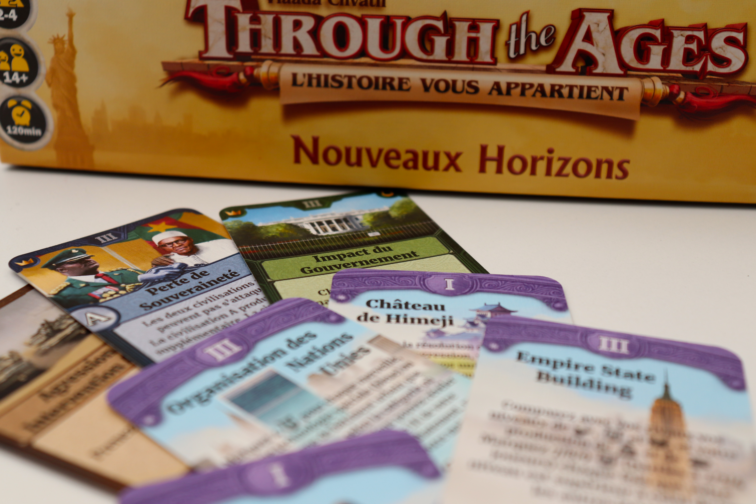 Nouveaux Horizons est une extension développée pour diversifier les stratégies de jeu de Through the Ages et permettre aux joueurs des parties toujours plus variées.