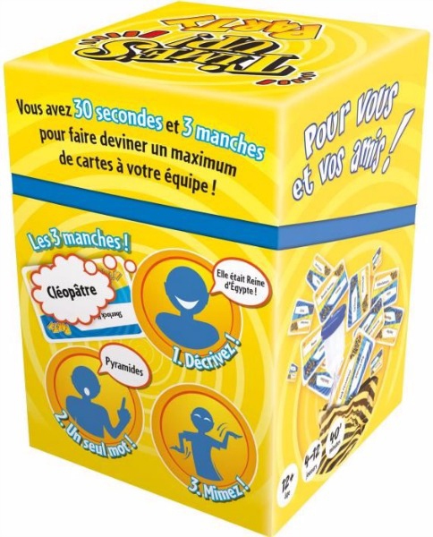 Pour s’amuser, il n’y a parfois pas besoin d’en faire des tonnes! Un jeu avec des mécanismes simples, 836 personnalités à deviner, un sablier, un peu de bonne humeur, et c’est parti ! Time’s Up est un jeu à déguster en famille ou entre amis dans lequel vous devrez deviner et faire deviner l’identité de 836 personnalités variées (réelles ou fictives). Il faudra être malin et rapide et ne pas avoir peur de vous marrer ! Rassurez-vous, pas besoin de connaître le dictionnaire par cur, toutes les méthodes seront bonnes : analogie, jeux de mots, mimes, ce sera à vous de trouver la plus efficace!